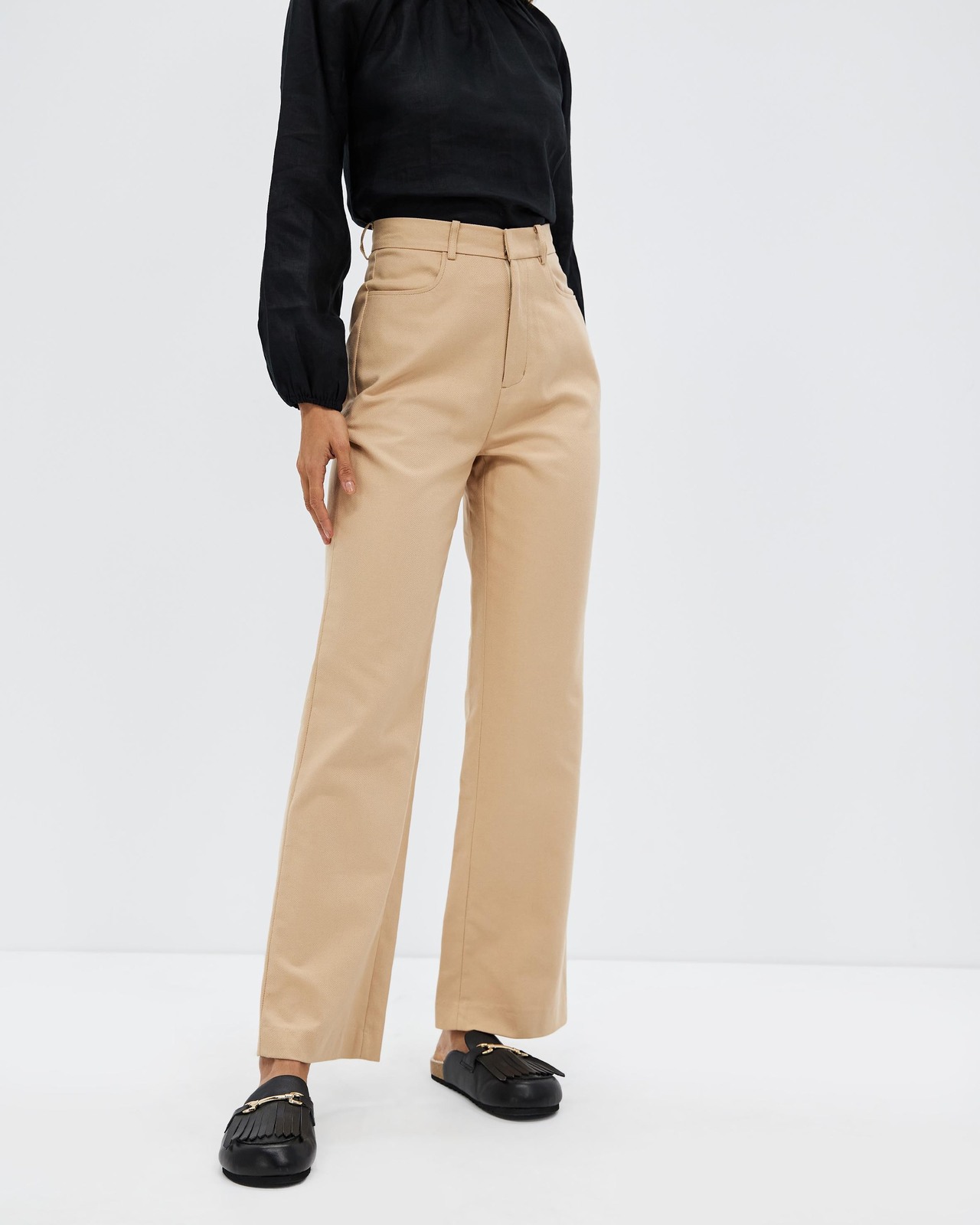 High Waisted Twill Tailored Pants