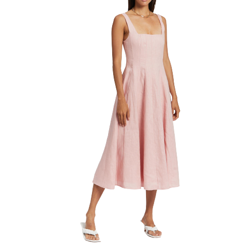 Sleeveless Boned Linen Midi Dress