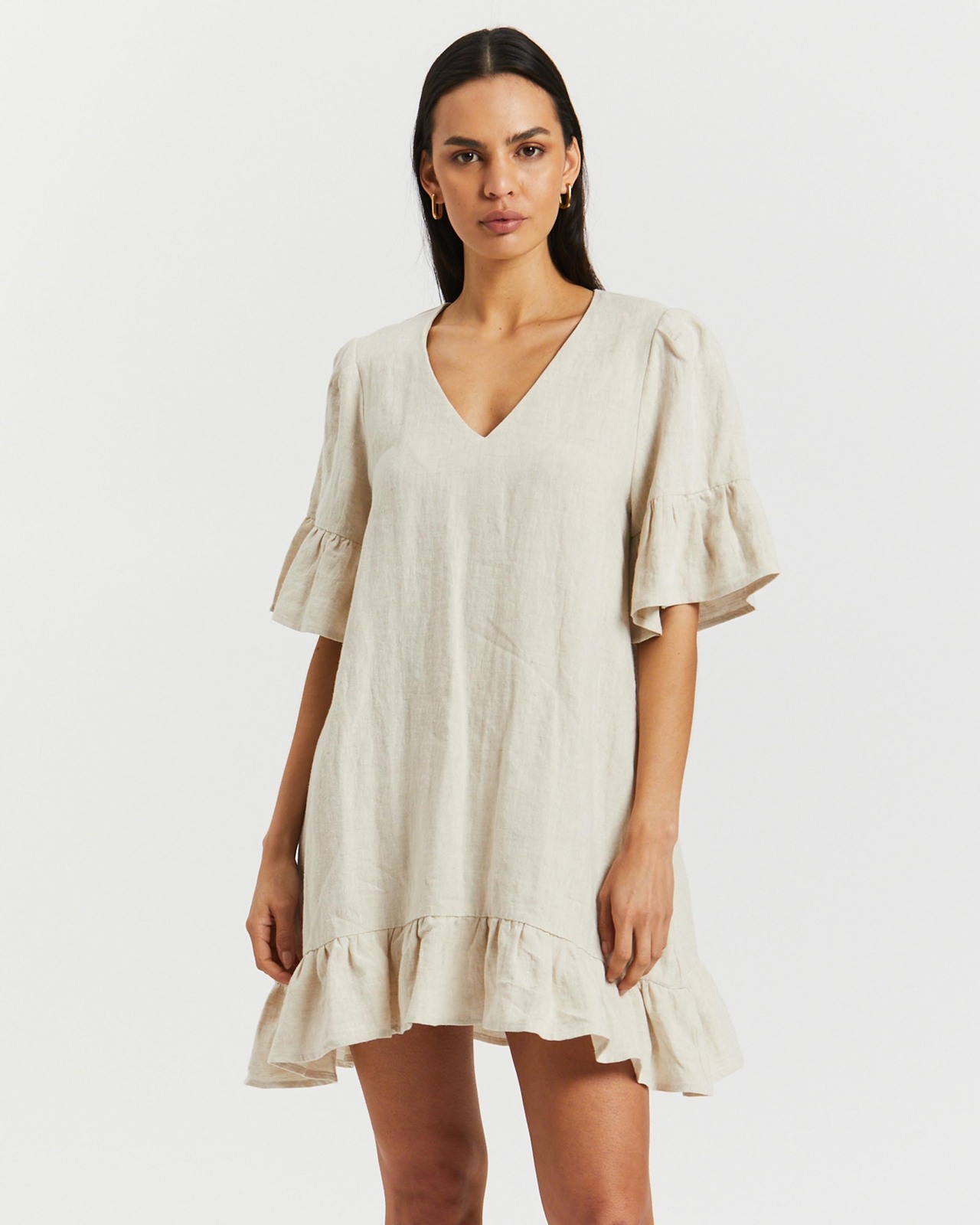 Frill Detail Linen Mini Dress