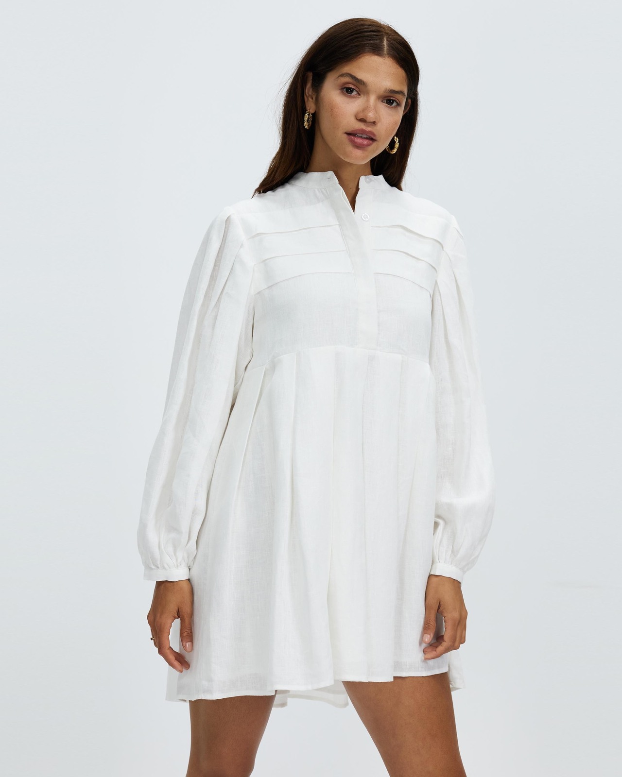 Pleat Detail Linen Smock Dress