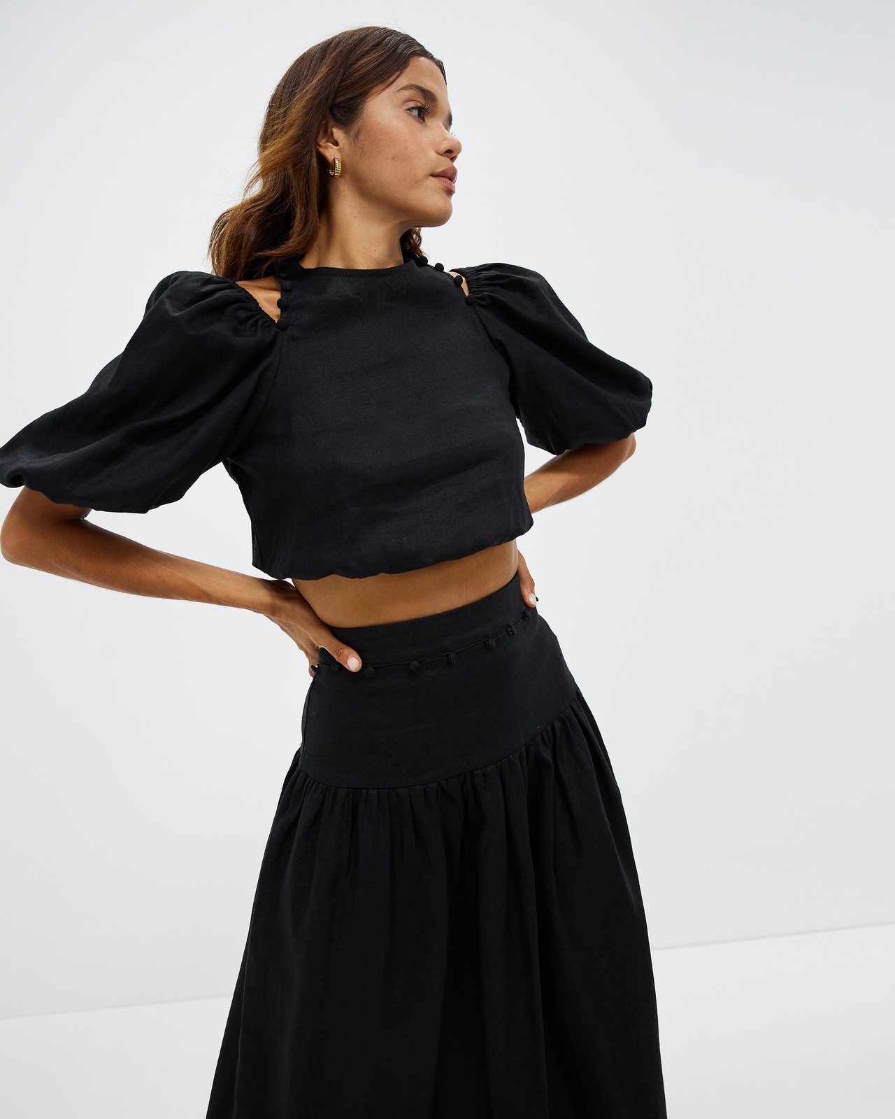 Long Sleeve Linen Crop Top