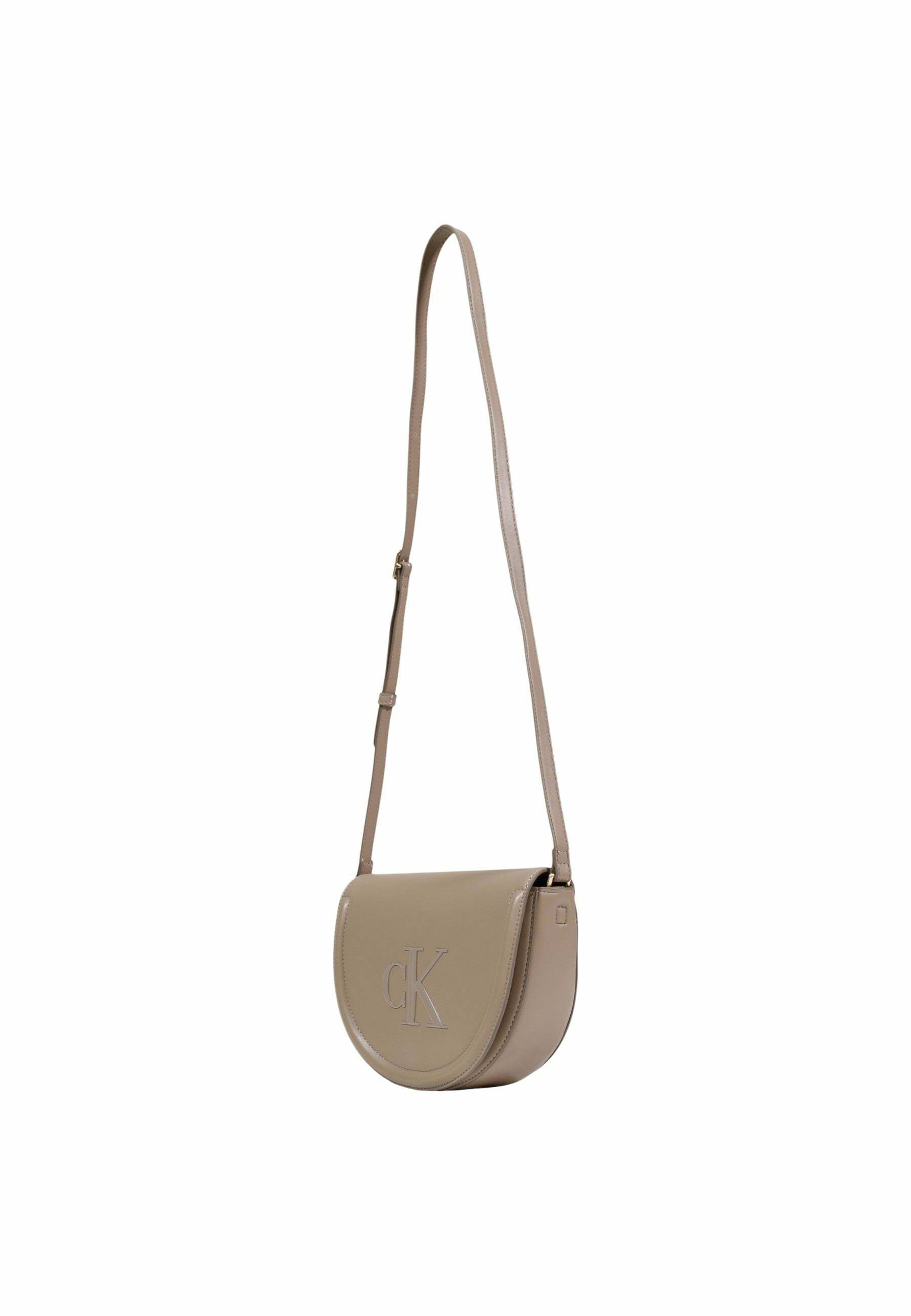 Polyurethane Shoulder Bag with Adjustable Strap - Beige / One Size