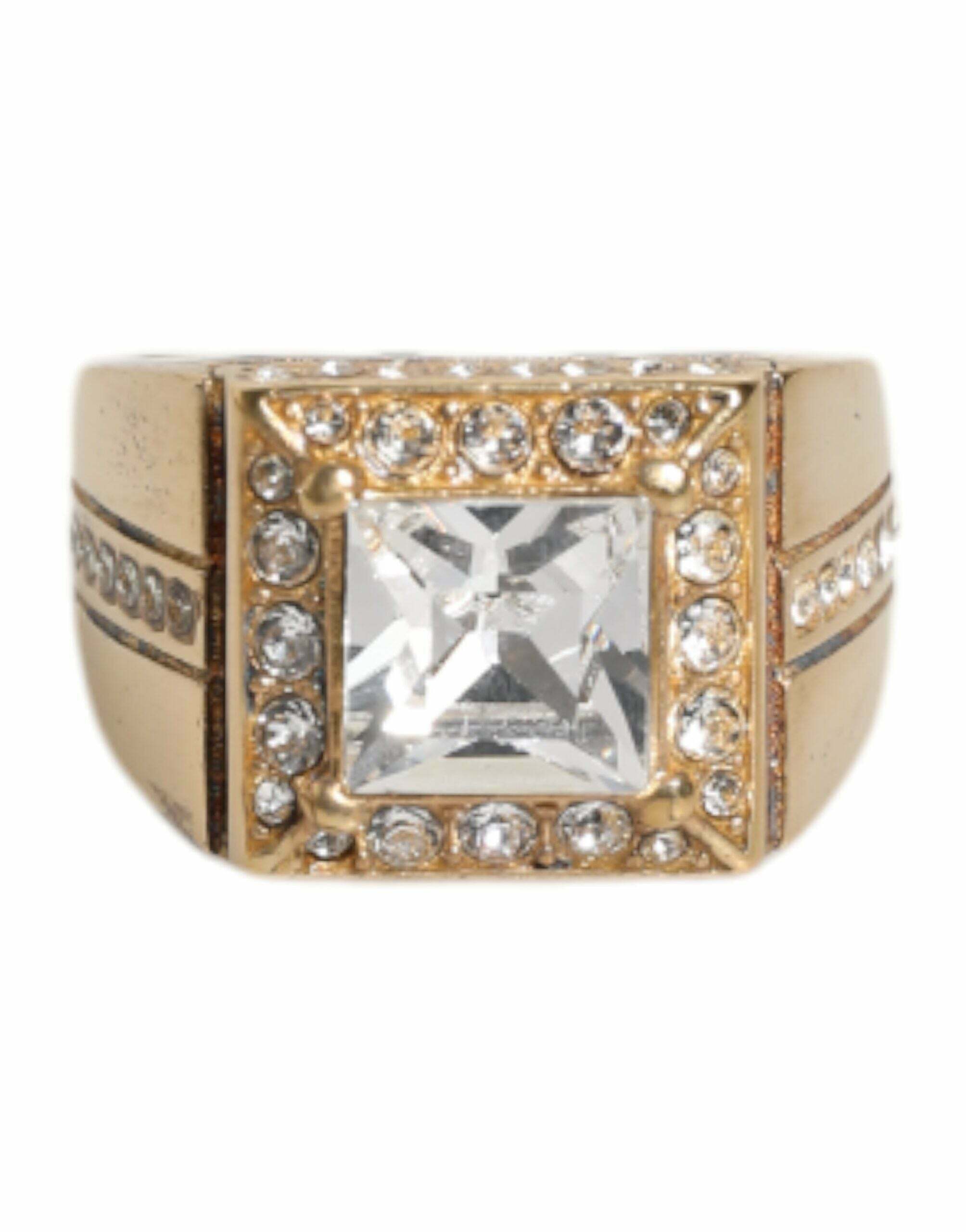 Square Cubic Zirconia Signet Ring - Gold / 58 EU