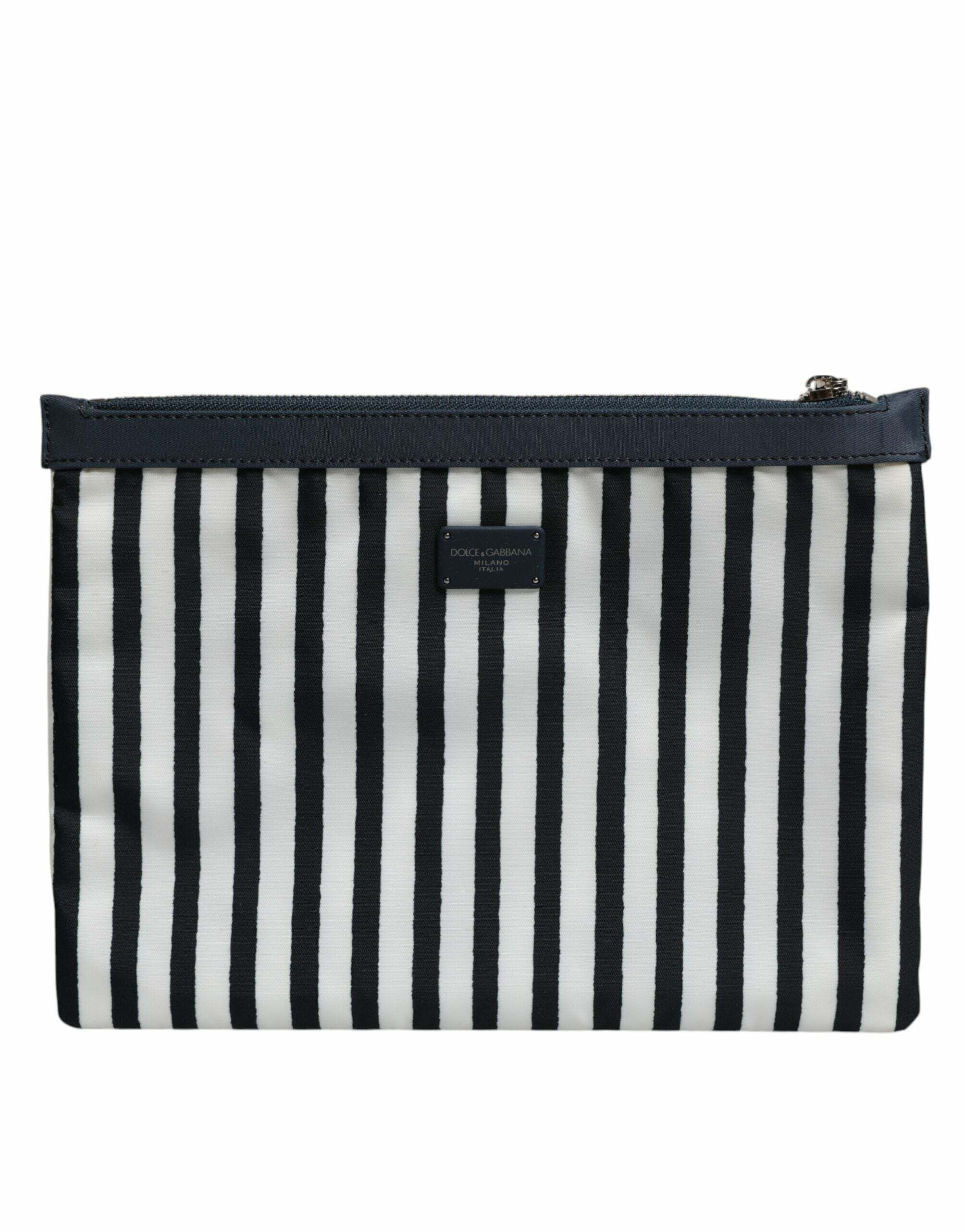 Striped Logo Plaque Clutch Pouch Bag - Black and White / One Size