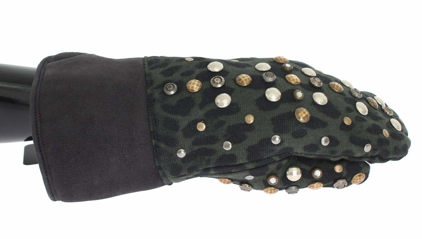 Leopard Print Studded Gloves Winter Style - Gray / 9
