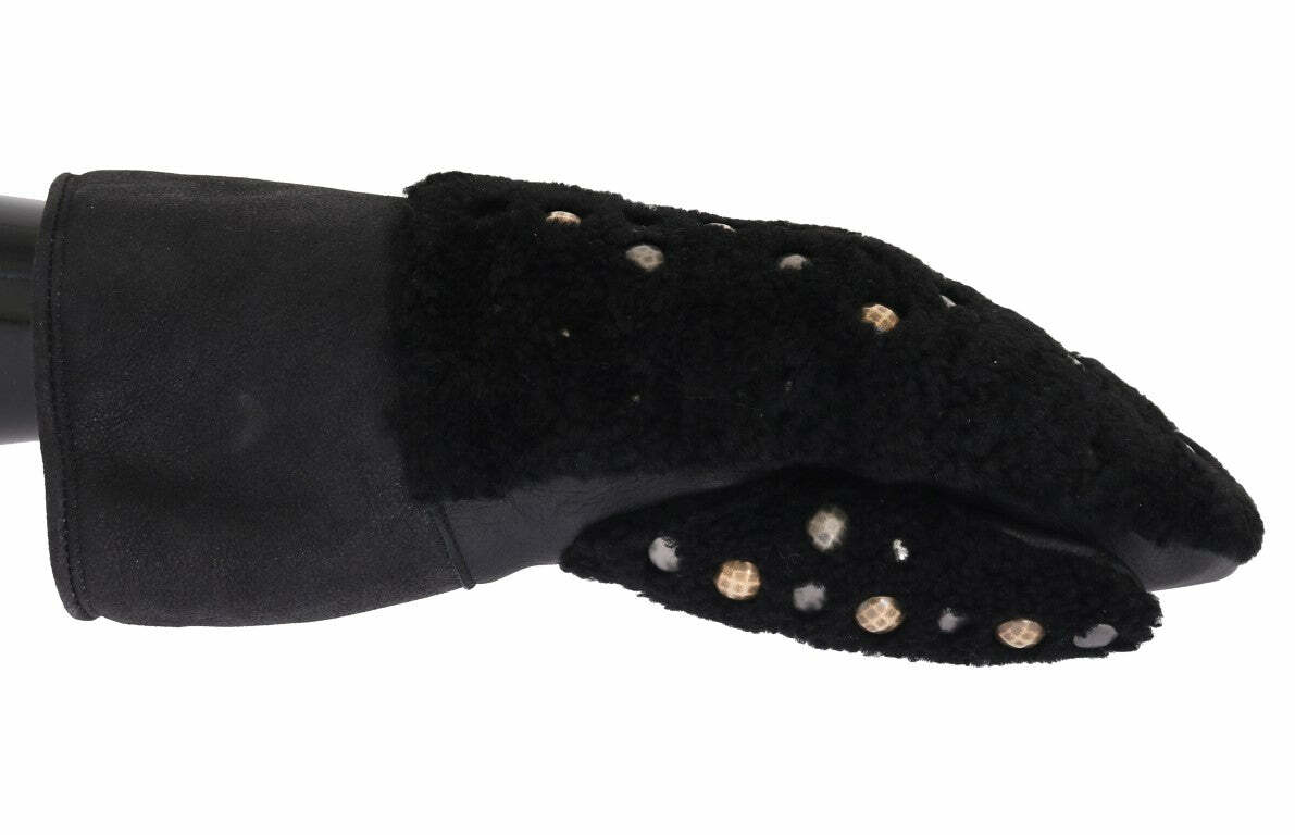 Dolce Gabbana Shearling Studded Gloves - Black / 9