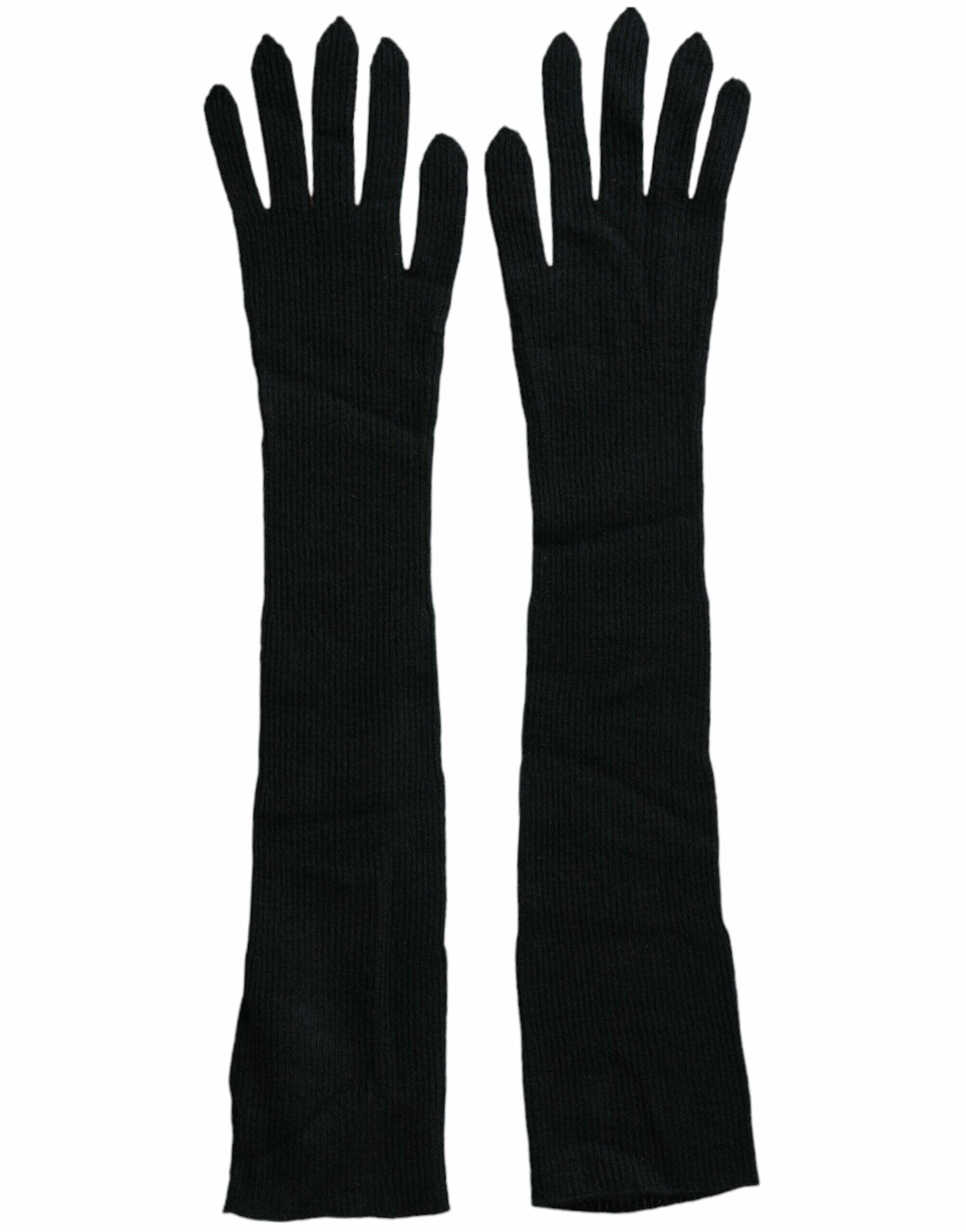 Long Ribbed Knit Gloves - Black / 7