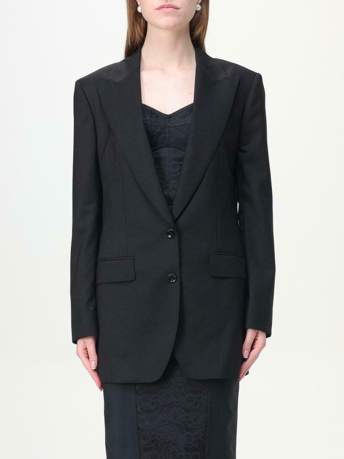 Single-Breasted Wool Blazer with Notched Lapel - Black / 38 IT