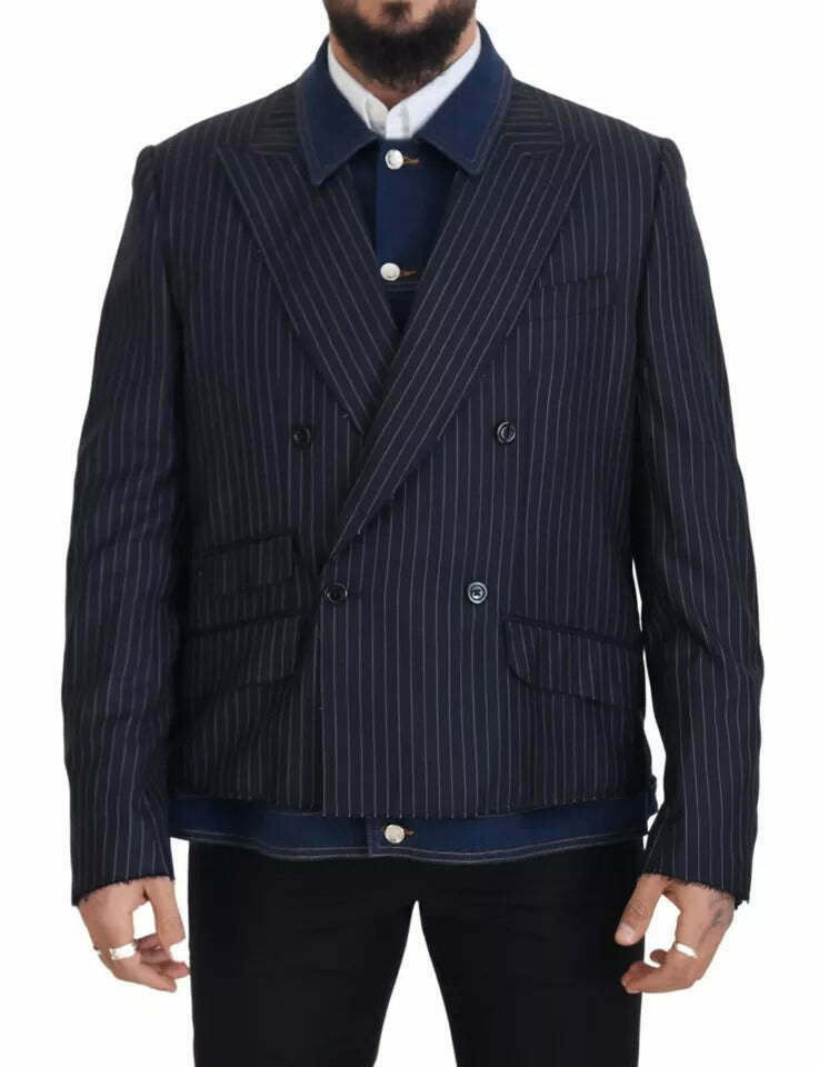 Dolce & Gabbana Men's Double Breasted Striped Blazer - Blue / 56 IT