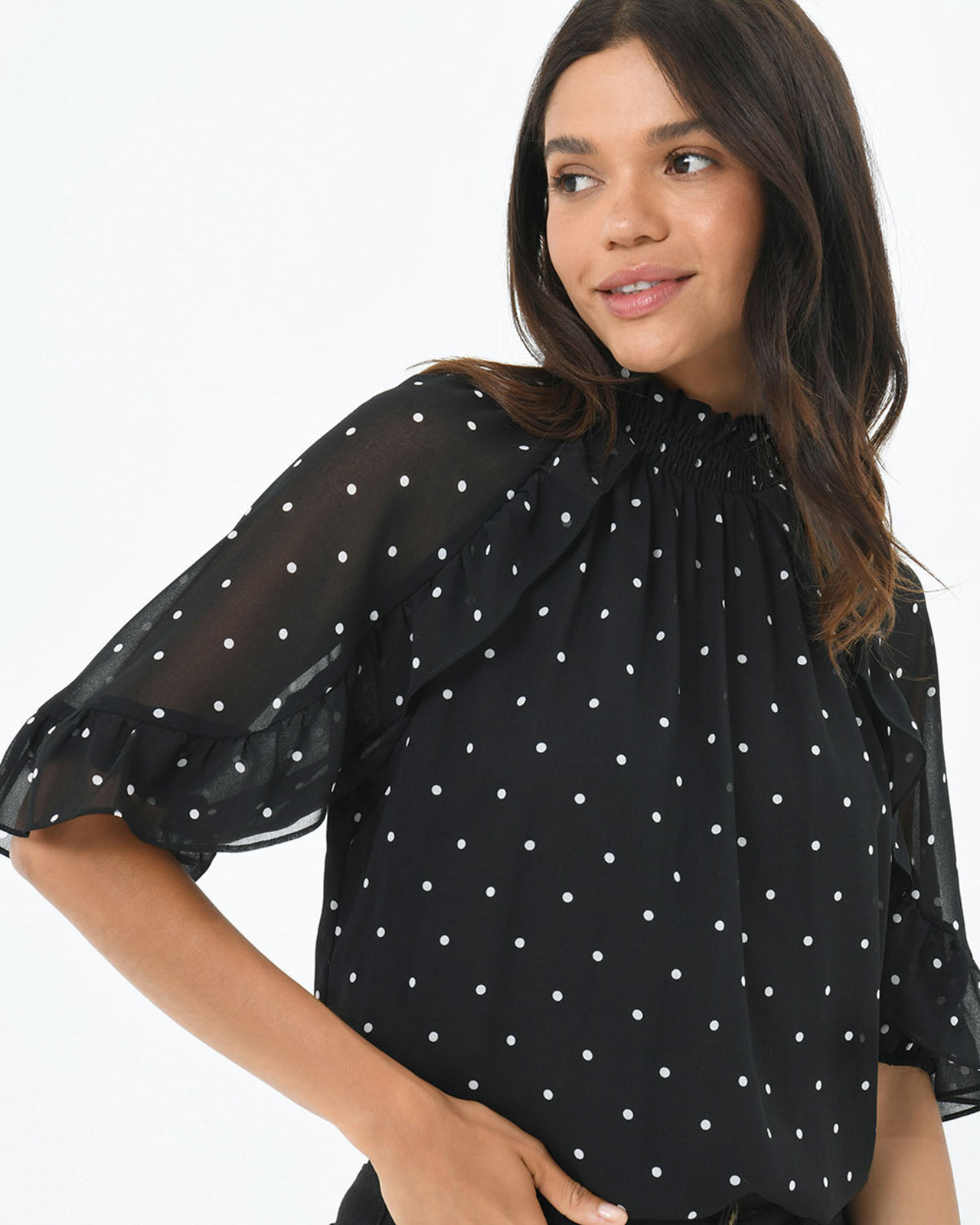 Doris High Neck Frill Blouse