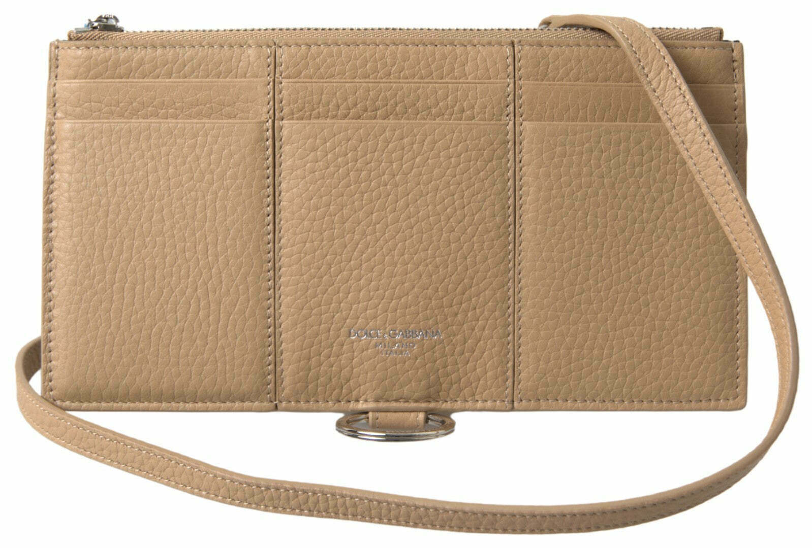 Pebble Grain Leather Wallet Crossbody Style - Beige / One Size