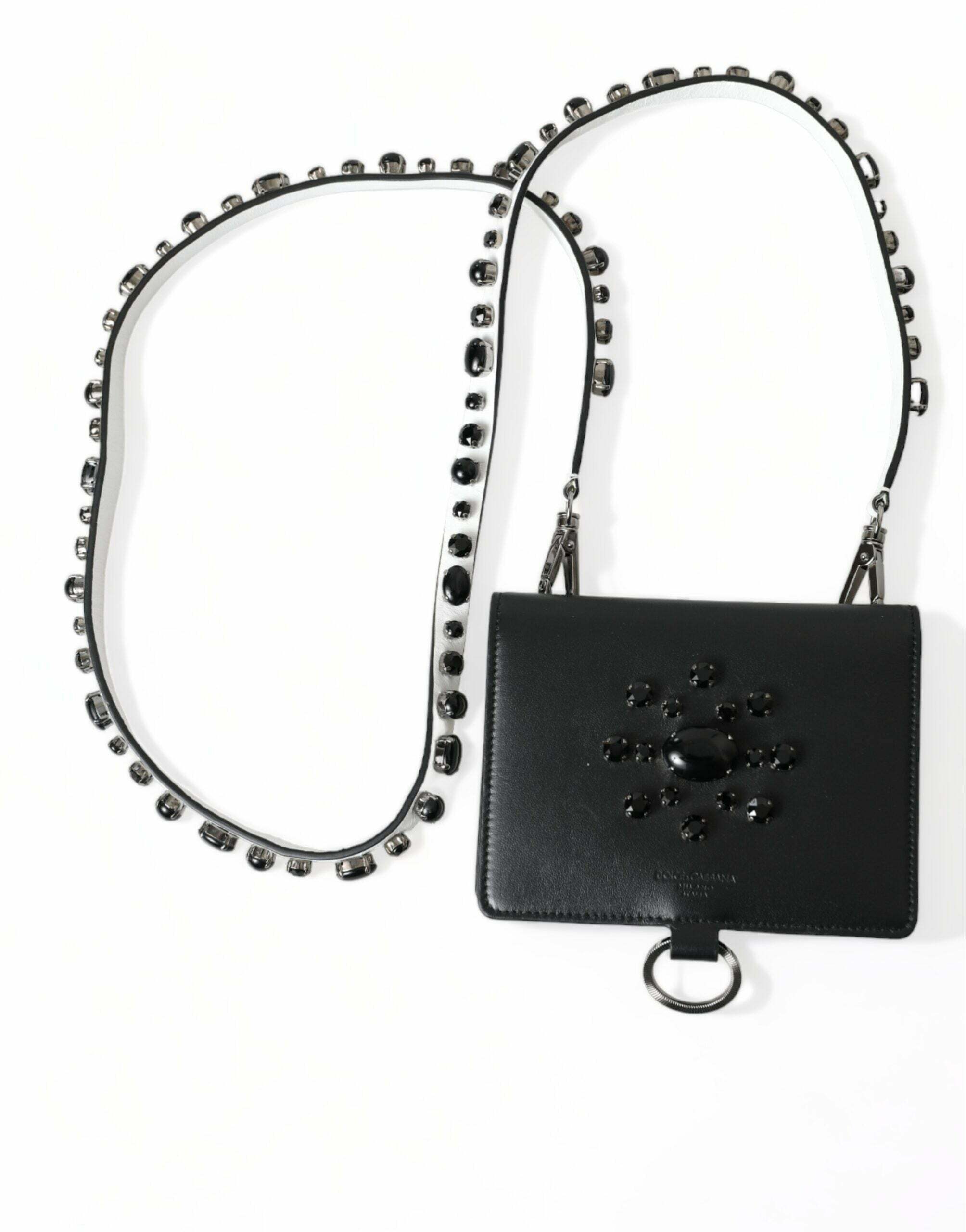 Crystal Card Holder Black Leather Wallet - Black / One Size