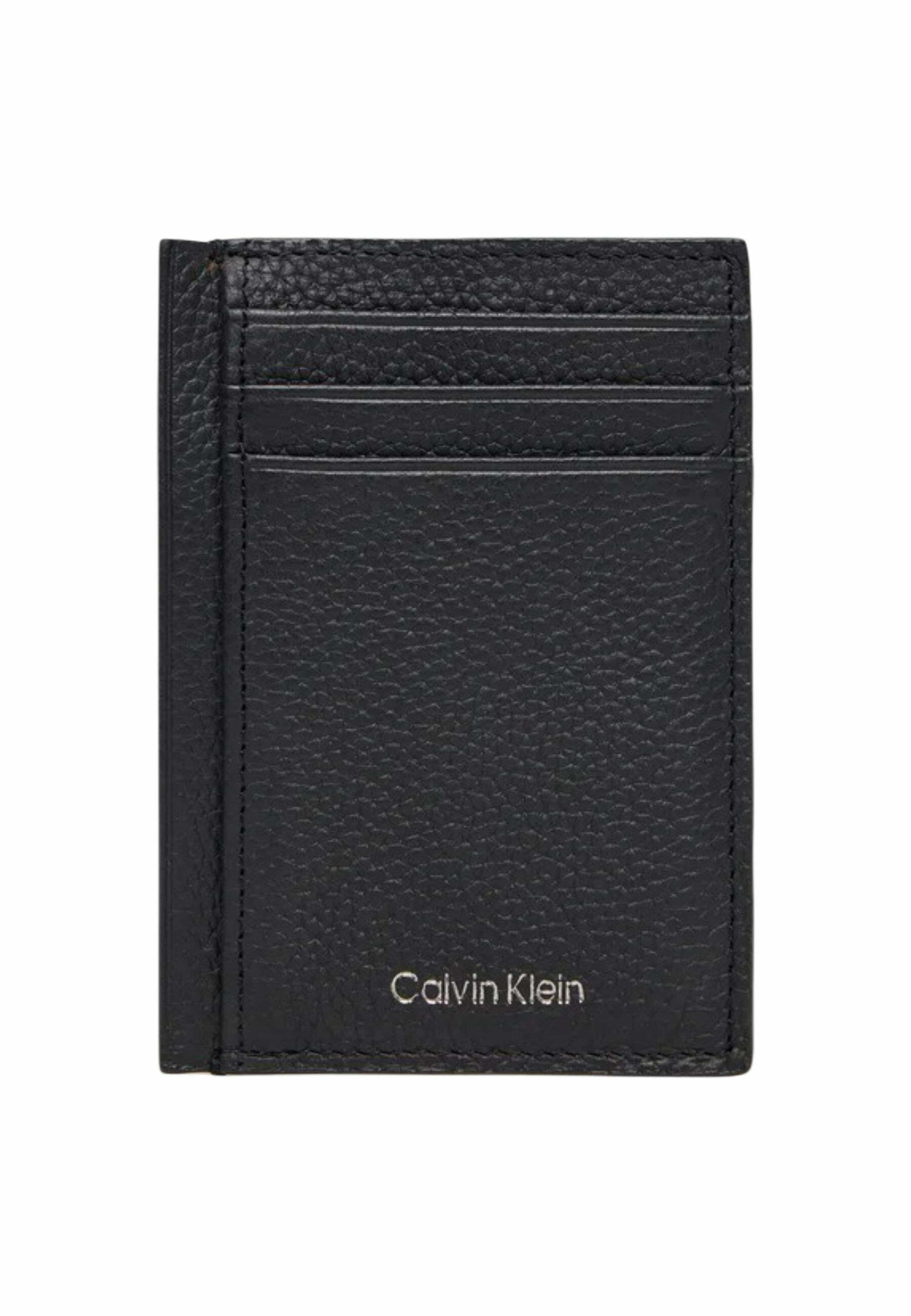 Calvin Klein Mens Black Leather Card Holder with Zip Closure - Black / One Size